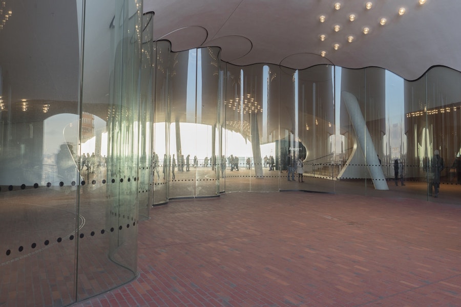 - 建物のパノラマ展望台であるエルプフィルハーモニー広場のガイド付きツアーをお楽しみください。
