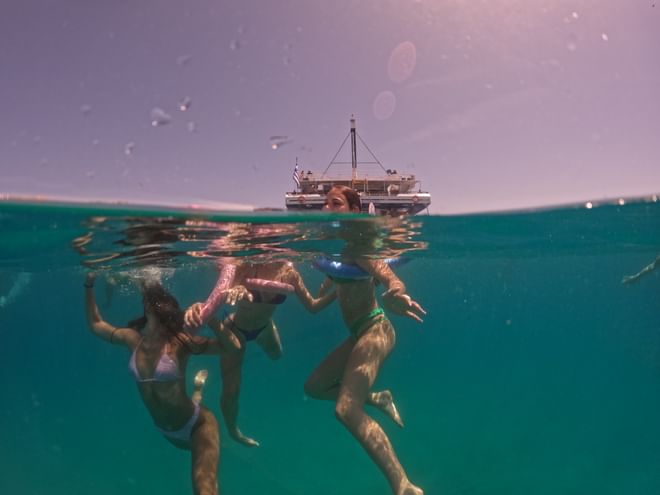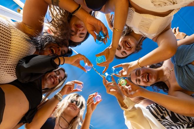 サンベッド、日陰のエリア、屋内ラウンジ、ライブDJを備えた1,400m²を超える3デッキの巨大な船をお楽しみください。日光浴をするもよし、日陰でリラックスするもよし、ダンスを楽しむもよし、ドリンクを片手にくつろぐもよし。
