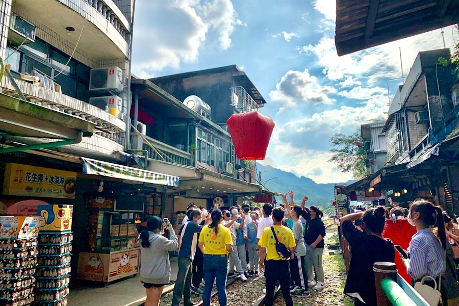 最後に、魅力的な鉄道と空に提灯を投げる伝統行事で有名な石份に到着します。幸運と繁栄を呼び込む台湾の風習に従って、ランタンに願い事を書いて飛ばそう。