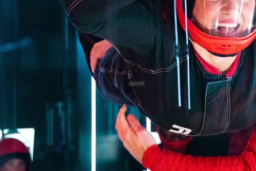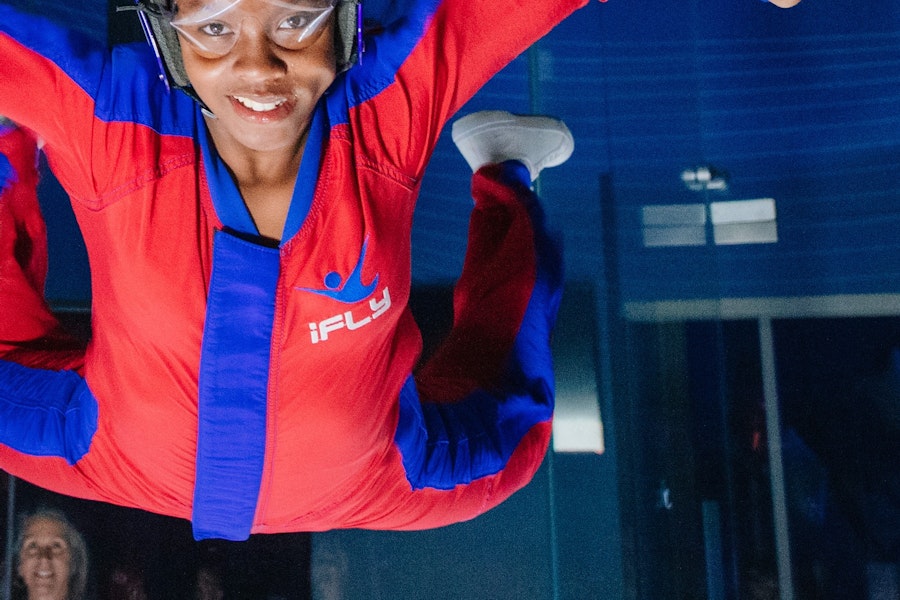 iFLYタンパの屋内スカイダイビングで、飛行機から飛び降りることなく、空を飛ぶスリルを体験してください。iFLYタンパの屋内スカイダイビング体験は、英語での ガイド付きトレーニングセッションから始まり、基本的な姿勢や合図を学び、装備一式を受け取り、フライト中は公認インストラクターが一歩一歩伴走します。